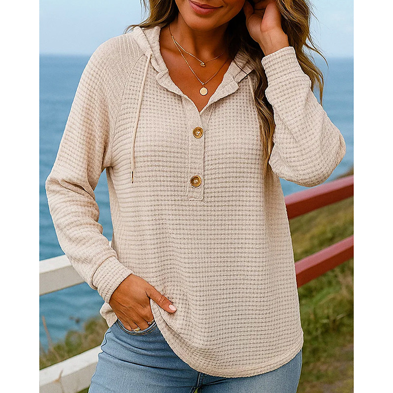 Women's Casual Tops Pullover Hoodie Buttons Long Sleeve Top Athleisure Fall Solid Colored Outdoor Travel Sports Sportswear Activewear Black Pink Blue