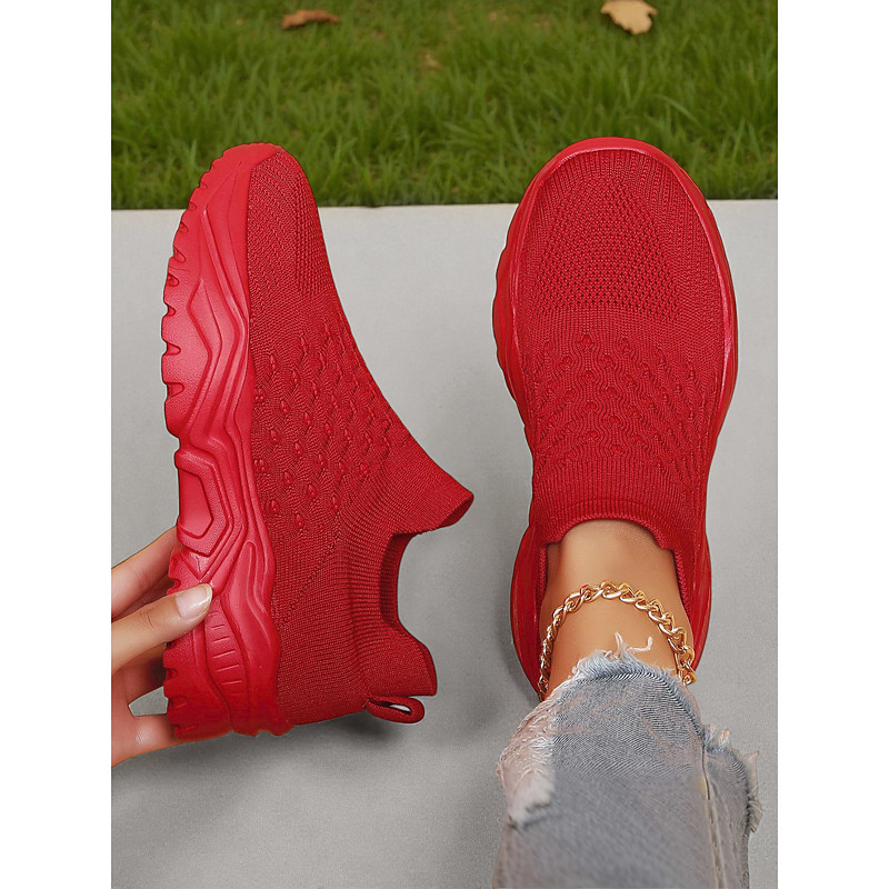 Women's Bright Red Athletic Slip-On Shoes with Breathable Knit – Lightweight and Comfortable Sneakers for Everyday Activities, Travel and Casual Outings