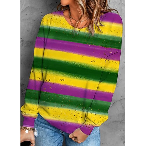 Felpa Pullover da Donna Carnival Maglietta Grafica Geometrica Casual Maniche Lunghe Collo Giro Collo Regolare Tops Moda Quotidiana Giallo Viola Primavera Autunno Inverno