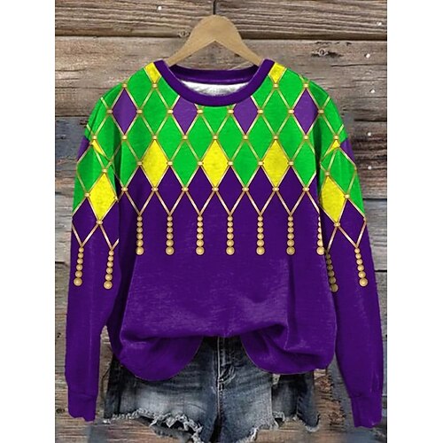 T-Shirt Donna Stampa Teschi Grafica Vintage Moda Elegante Maniche Lunghe Collo Giro Collo Rotondo Top Regolari Stampa Giornaliera Gialla Blu Viola Verde Grigia Estate Primavera Autunno