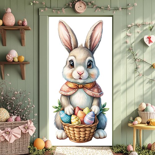 Pasqua Poster Copertura della porta Banner per esterni Rabbit Carino 3D Da serata Dormitorio Stanza per adolescenti Dormitorio universitario Ragazzi Man Cave Frat Bedroom Sfondi di ripresa