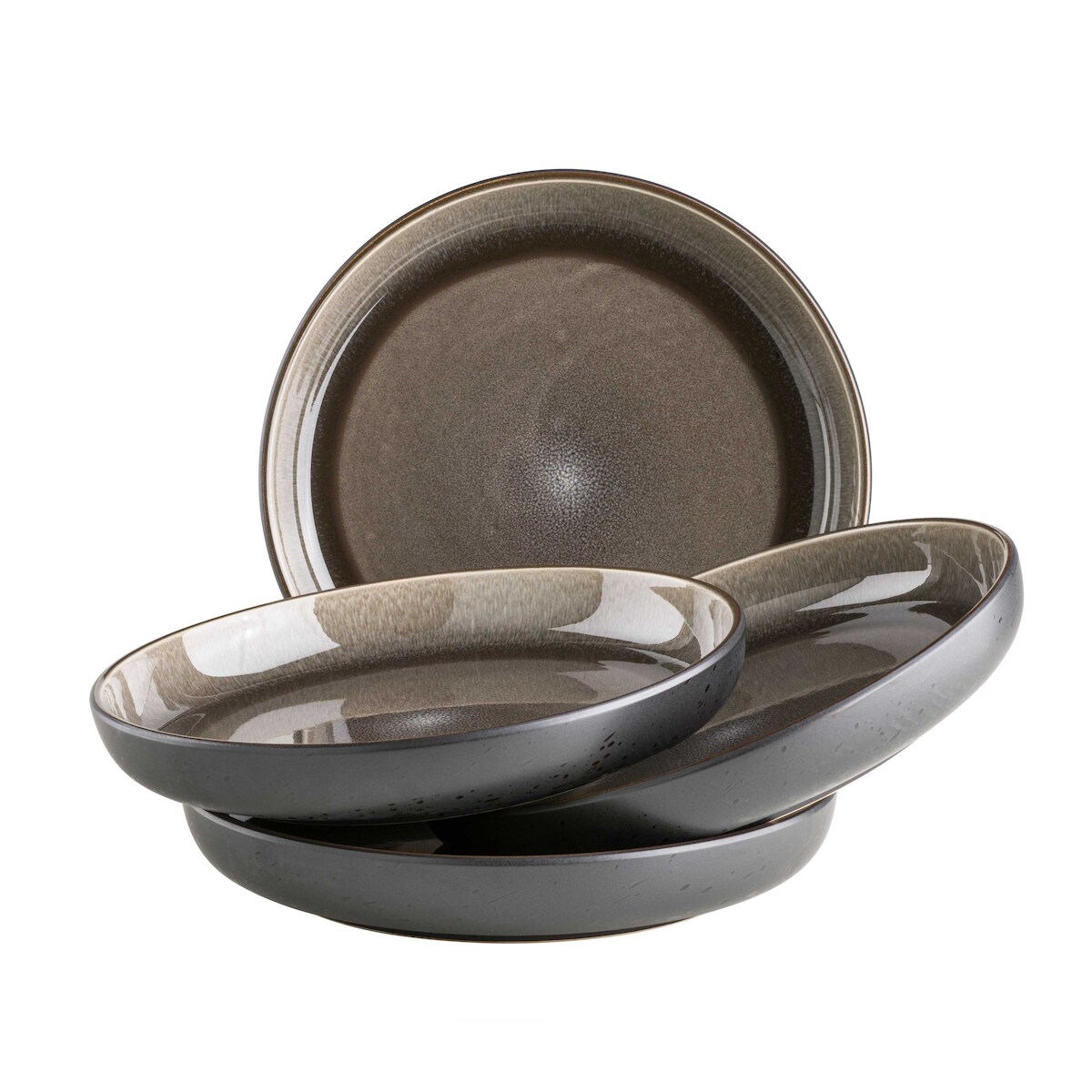 MÄSER Teller tief 24 cm, 4-er Set, SCHWARZ/GRAU, postsicher, Serie NIARA