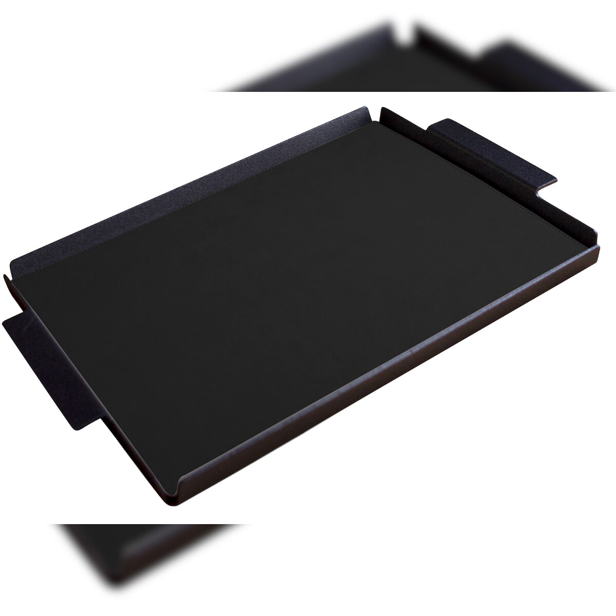 Stil Casa, 6er Set Serviertabletts, schwarz lackiertes Aluminium, Deckel aus genähtem, laminiertem Polyurethan, 45x65xh. 0,2 cm Farbe schwarz.