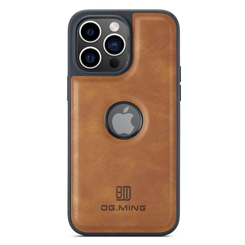 DG.MING Mobilskal till iPhone 15 Plus Logo View Brun PU Läder+PC+TPU