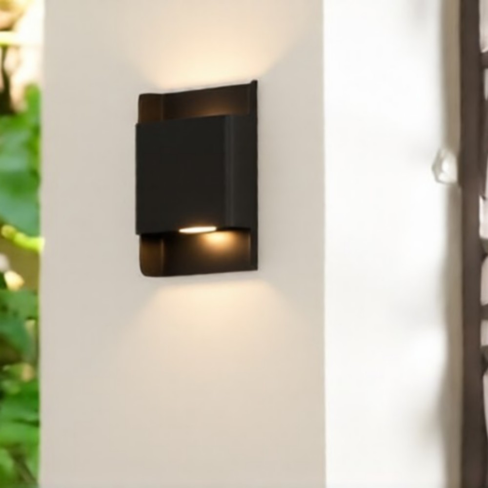 lampada da parete per esterni / interni a led 6w illuminazione su / giù per interni lampada da parete ip65 curva impermeabile a doppia testa lampada da camera moderna luce bianca calda ac85-265v
