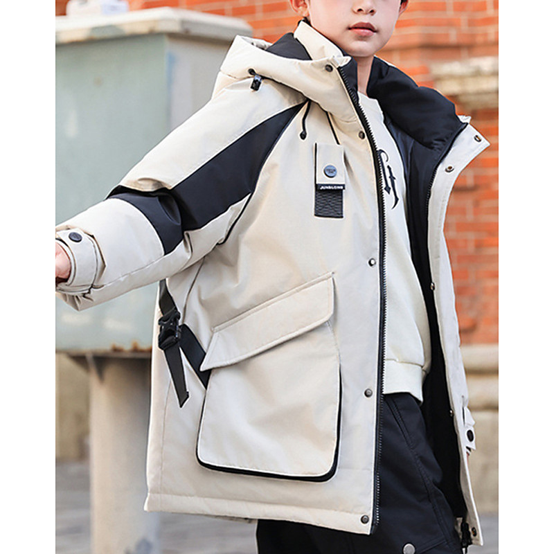 Kids Girls' Down Jacket Puffer Jacket Color Block Sports Pocket Keep Warm Windproof Outdoor Coat Outerwear 6 years Winter Khaki Gray