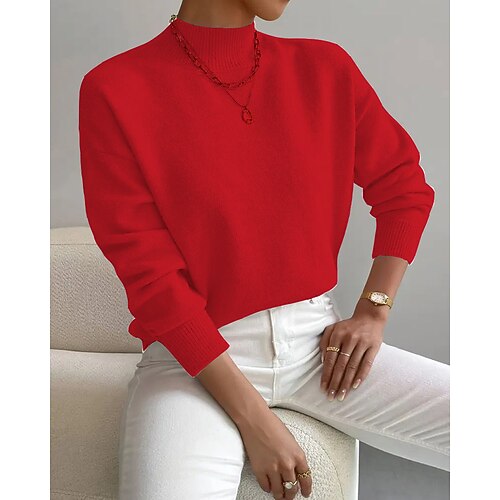 Per donna Felpa Maglione Moda Streetwear Casual Tinta unica Collo alto Lavorato a maglia Manica Lunga Top Regolari Maglia Quotidiano Ferie Uscire Giallo Rosa Autunno Inverno