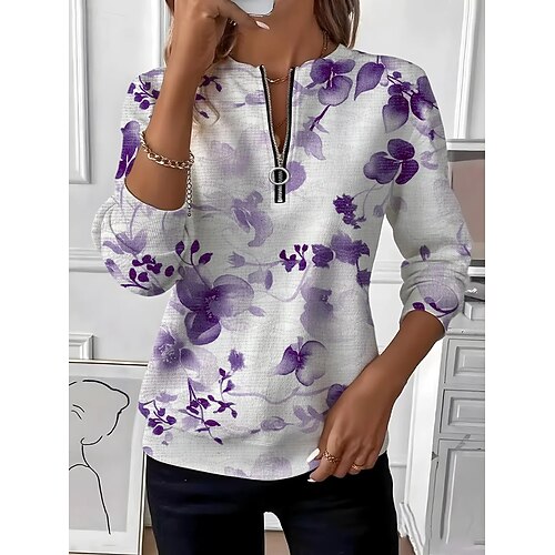 Per donna Felpa Pullover Floreale Grafico Moda Casual Manica Lunga Girocollo Top Regolari Streetwear Abbigliamento Quotidiano Cerniera Stampato Blu Viola Autunno Inverno