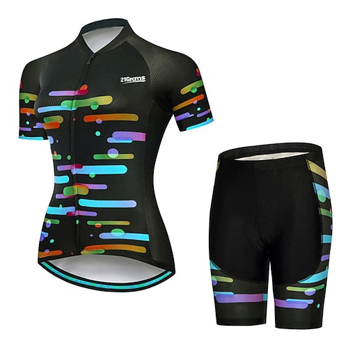 Damen Radtrikot mit Radhose fahrradbekleidung set Triathlonanzug Kurzarm MTB Mountain Rennrad Schwarz Blau Fahhrad Sportkleidung Atmungsaktiv Rasche Trocknung Schweißableitend Polyester Sport