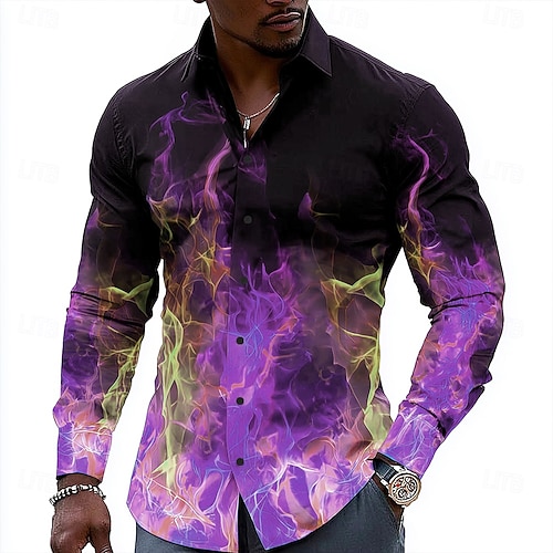 Herren Optische Täuschung Flamme Hemd Knopfhemd Lässiges Hemd Langarm Lässig Outdoor Ferien Sommer Frühling Umlegekragen 3D-Druck Hemden mit Kragen Schwarz Rote Purpur Grün