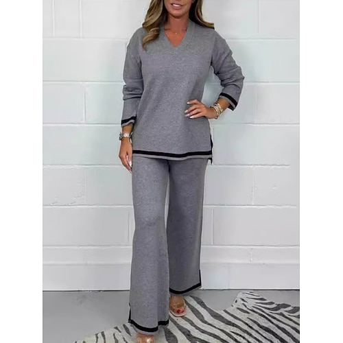 Per donna Moda Streetwear Quotidiano Set di Pantaloni Manica Lunga Scollo a V Tinta unica Patchwork Casuale Quotidiano Blu Nero Bianco Autunno Vestibilità regolare