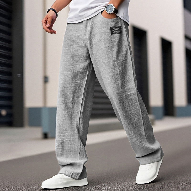 Men's Linen Pants Trousers Summer Pants Beach Pants Buttons Pocket Pleats Plain Comfort Breathable Daily Holiday Vacation Hawaiian Boho White Khaki