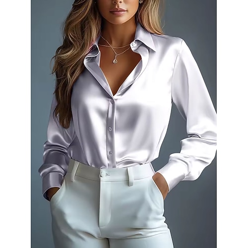 Camicia da donna Elegante Top Formale Camicia da lavoro Unico Colore Piana Elegante Stile Base Manica Lunga Collo Feste Sera Abbigliamento Serata Uscite Bianco Rosa Blu Viola Verde Primavera Autunno