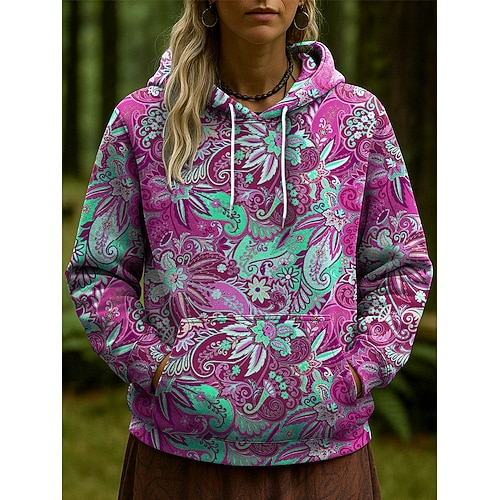 Per donna Felpa con cappuccio Floreale Grafico Paisley Casual Manica Lunga Con Cappuccio Top Regolari Abbigliamento da sera Streetwear Abbigliamento Quotidiano Rosa Blu Arancione Verde Primavera