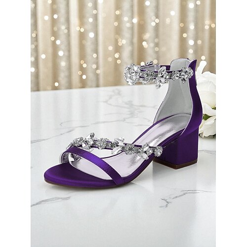 sandali da donna con tacco a blocco in raso blu - scarpe da sera decorate con strass e cinturino alla caviglia per banchetti formali e cocktail party