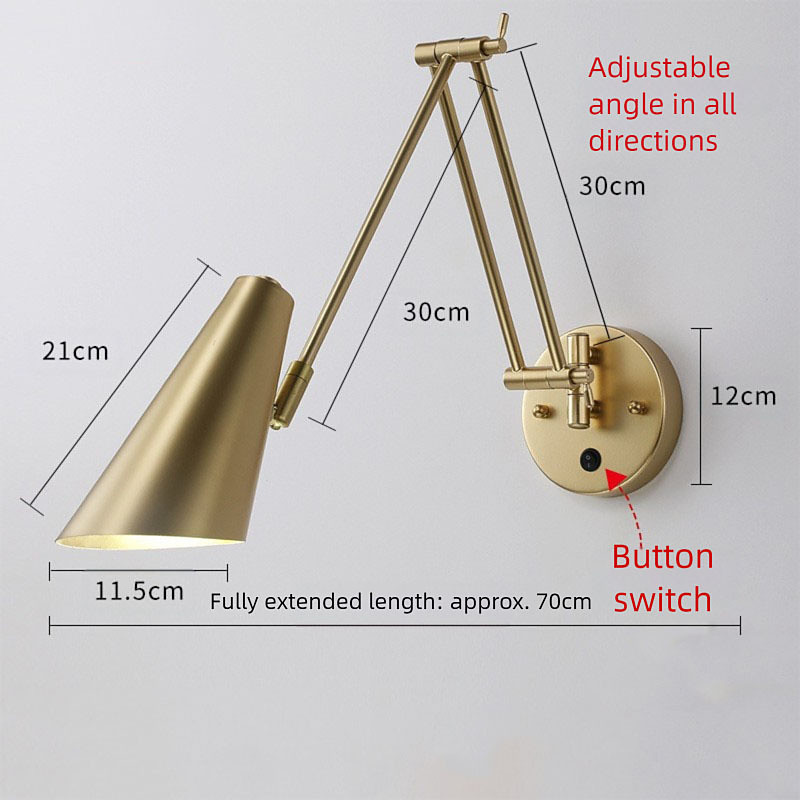 Vintage Industrial Swing Arm Wall Lamp Dimmable Switch Adjustable Gold Long Arm Wall Mounted Reading Light Black White Farmhouse Hardwire Bedroom Headboard Wall Lamp