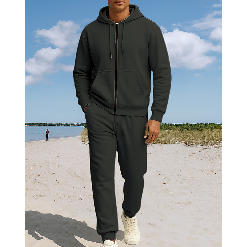 Men's Tracksuit Fleece Hoodie Two Piece Outfits Full Zip with Pocket Solid Colored Clothing Suit Fall Black Army Green Outdoor Travel Sports High Waist Thermal Warm Long Sleeve Sport Activewear
