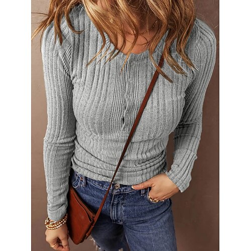 Per donna Blusa Tinta unica Elegante Casual Manica Lunga Girocollo Top Regolari Quotidiano Bottoni Nero Rosa Verde militare Cachi Grigio Primavera Autunno Inverno