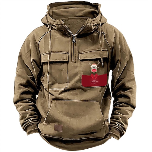 Per uomo Felpa con cappuccio Felpa con cappuccio e zip corta Nero Rosa Vino Blu Verde Con Cappuccio Ogni Coulisse Tasca Sport Outdoor Quotidiano Ferie Natale Streetwear Casual Primavera Autunno
