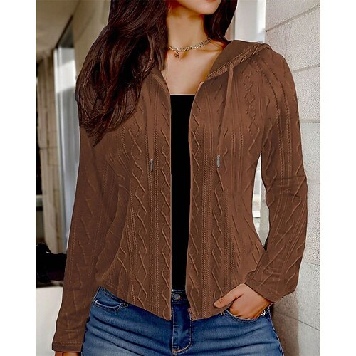 Per donna Felpe con cappuccio Semplice Elegante Caldo Moda Manica Lunga Con Cappuccio Top Regolari Casa Lavoro Streetwear Coulisse Cerniera Nero Bianco Vino Caffè Estate Primavera