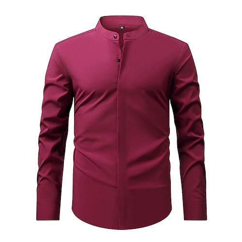 Per uomo Camicia Camicia elegante Camicia non stiro Camicia con colletto alla coreana Semplice Affari Quotidiano Nero Bianco Giallo Vino Manica Lunga Collo alla coreana Estate Primavera Abbigliamento