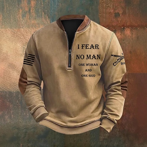 Per uomo Felpa con zip corta Nero Bianco Vino Blu marino Verde Mezza zip Lettera Bandiera Americana Tasca Frontale Zip a un quarto Quotidiano Ferie Uscire Poliestere Vintage Retrò Casual Autunno