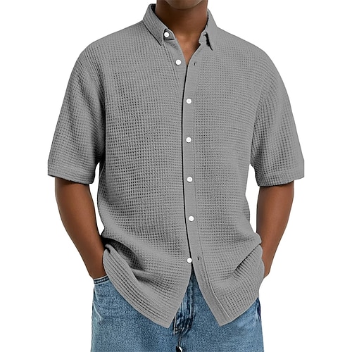 Per uomo Camicia Camicia a nido d'ape Tessuto Camicia casual Camicia con Bottoni Nero Bianco Vino Blu marino Azzurro cielo Manica Corta Semplice Bavero Quotidiano Abbigliamento casual alla moda