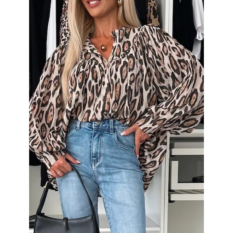 Women's T shirt Crew Neck Long Sleeve Tunic Casual Print Regular Tops Daily Brown Spring Fall