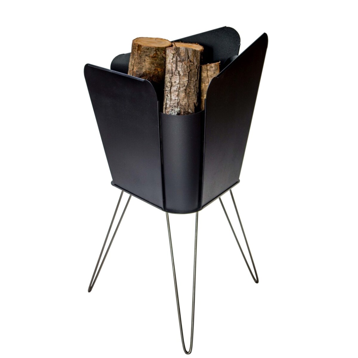VASNER Merive M2 Feuerkorb schwarz mit drei Edelstahl Hairpin Beinen, geschlossene Form für lange Brenndauer