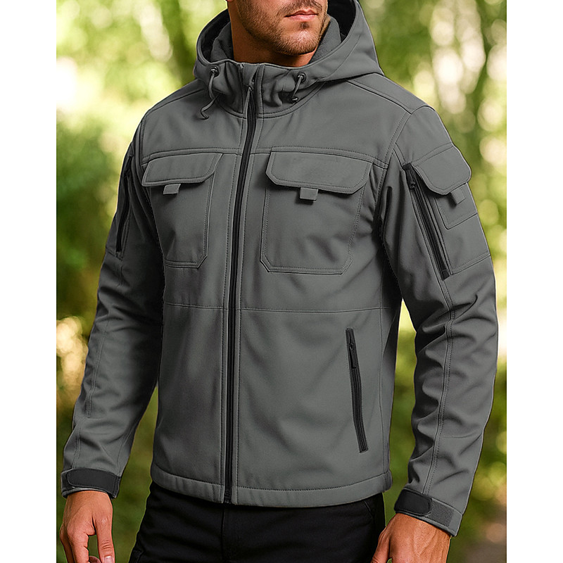 Men's Softshell Jacket Hiking Jacket Outdoor Windproof Water Resistant Hoodie Windbreaker Jacket Camping / Hiking / Caving Traveling Black Army Green Navy Blue Khaki Grey