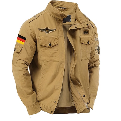 Herren Deutschland Nationalflagge Cargo-Jacke Windbreaker Militärjacke Praktisch Lässig Outdoor Campen und Wandern Bestickt Seitentaschen Frontreißverschluss Herbst Winter Stehkragen Langarm Schwarz