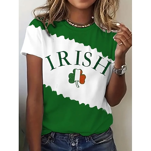 T-shirt da donna per il giorno di San Patrizio floreale elegante classico casual maniche corte scollo tondo top regolare stampa giornaliera nero bianco verde chiaro off-white estate primavera