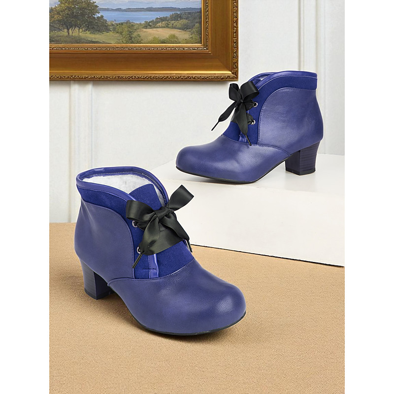 Women's 1900s Victorian-Inspired Burgundy Ankle Boots – Faux Leather Lace-Up Heeled Booties with Ribbon Bow for Daily Wear Vintage Outfits