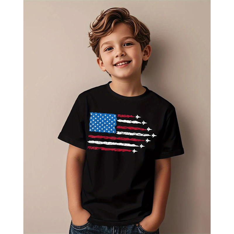 American Independence Day Boys' 3D Graphic Flag T shirt Tee Short Sleeve Summer Spring Fashion Basic Kids 4-12 Years Crew Neck Outdoor Casual Daily Regular Fit