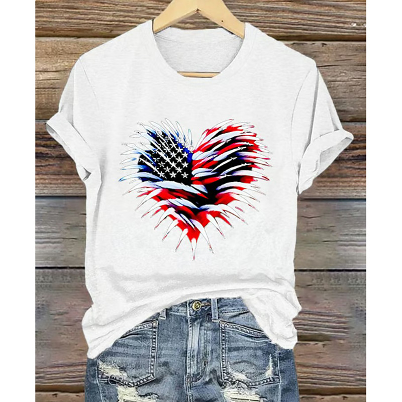 American Independence Day Women's T Shirt Graphic Flag American Flag Vintage Stylish Classic Short Sleeve Crew Neck Round Neck Regular Tops Daily Weekend Print Blue Black White Red Gray Summer Spring