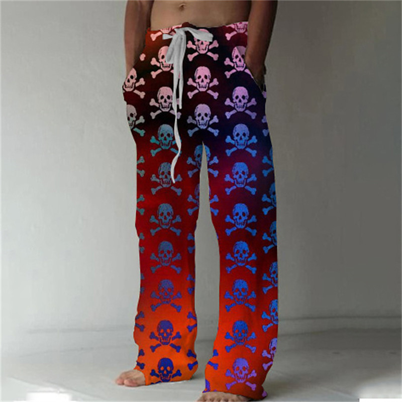 Men's Trousers Summer Pants Beach Pants Drawstring Elastic Waist Front Pocket Graphic Skull Comfort Soft Casual Daily Fashion Designer 1 2