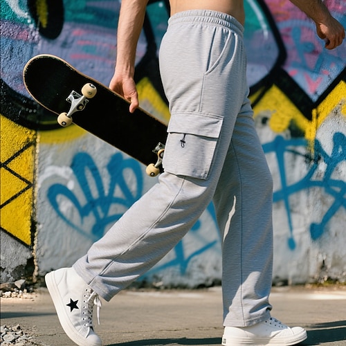 Herren Jogginghose Hose Cargo-Jogginghose Kordelzug Tasche Elastischer Bund Einfach Komfort Sport im Freien Täglich Mode Lässig Schwarz Armeegrün Mikroelastisch