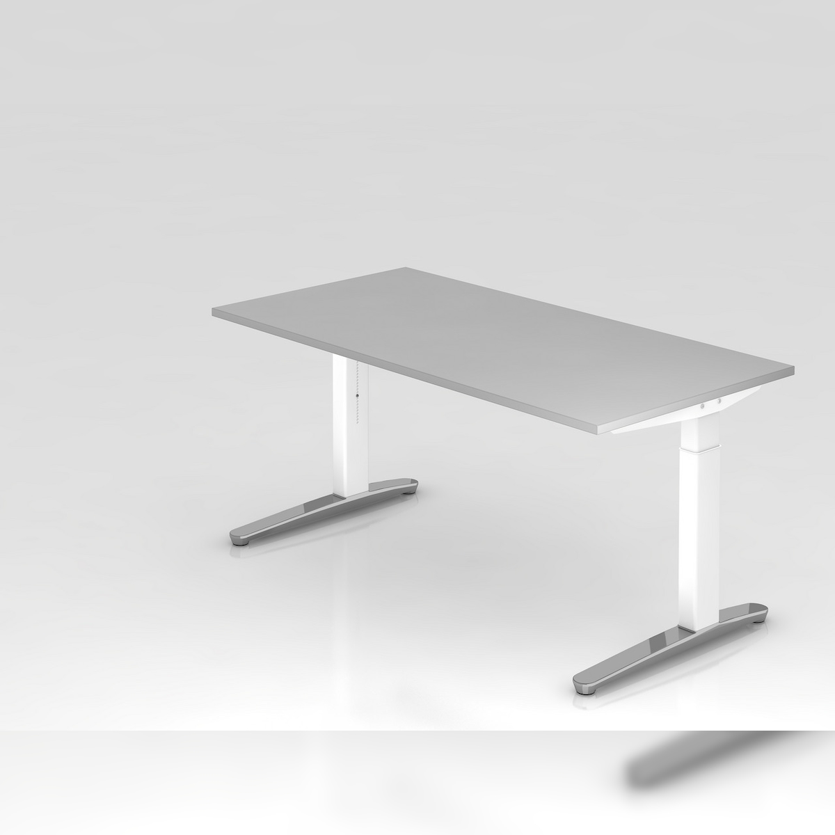 PROREGAL Schreibtisch Mika | Grau | Weißes Gestell poliert | BxT 160x80cm | Arbeitshöhe 65-85cm | höhenjustierbar, 1cm Raster | C-Fuß-Gestell