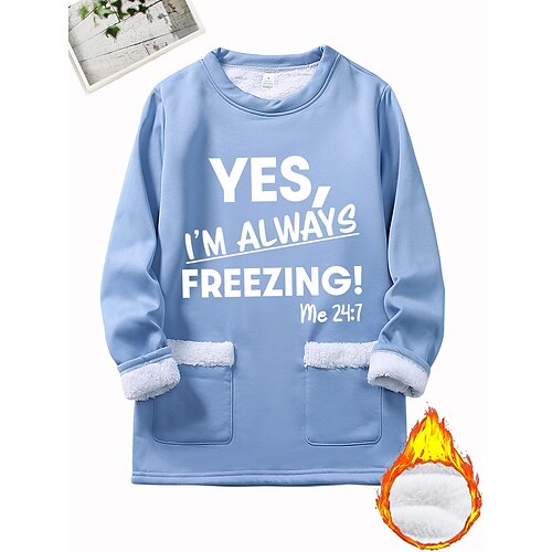 Per donna Felpa Pullover Pullover Grafico Lettera Caldo Moda Casual Manica Lunga Girocollo Top lunghi Streetwear Abbigliamento Quotidiano Tasca Stampato Nero Rosa scuro Blu Grigio Autunno Inverno