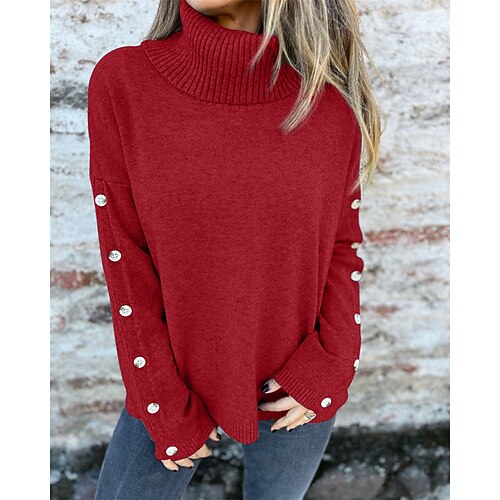 Per donna Felpa Maglione Elegante Moda Streetwear Tinta unica Dolcevita Oversize Bottoni Lavorato a maglia Manica Lunga Top Regolari Maglia All'aperto Quotidiano Ferie Rosso bordeaux Nero Autunno