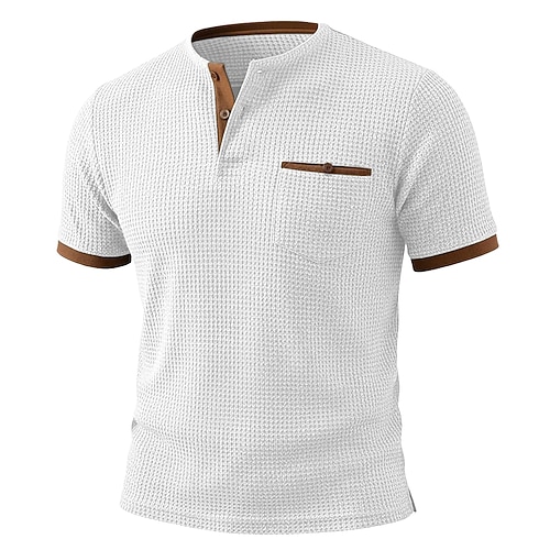 Herren Waffel-Henley-Hemd T-Shirt Kurzarm Henley Sommer Frühling Einfarbig Mode Designer Lässig Knöpfe Lässig Täglich Outdoor Schwarz Weiß Blau Top T-Shirt für Herren