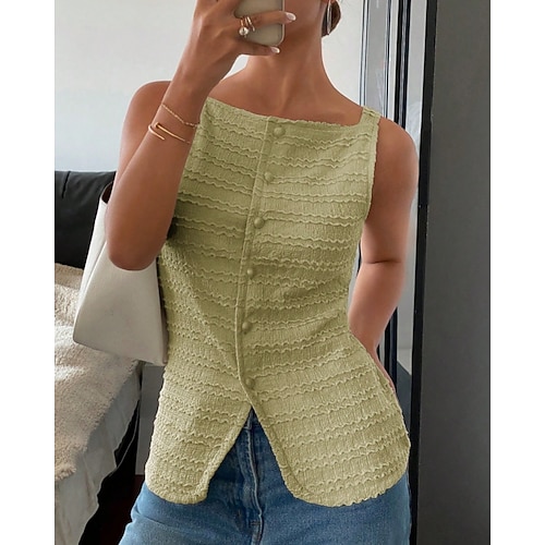 Damen Tank Top T-Shirt Einfarbig Elegant Mode Ärmellos Quadrathals Normale Oberteile Täglich Ausgehen Wochenende Knöpfe Schwarz Weiß Gelb Rosa Grün Sommer Frühling