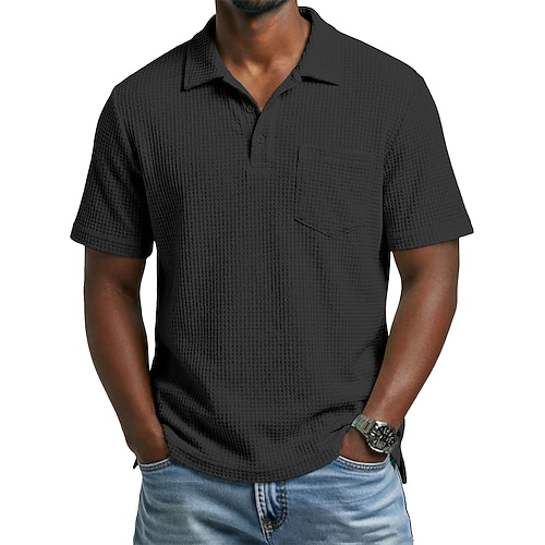Per uomo Maglia da golf Polo a Maglia Waffle Casuale Affari Collo ripiegato Classico Manica Corta Moda Moderno Tinta unica Semplice Tasca Bottoni Estate Primavera Vestibilità regolare Nero Bianco Blu