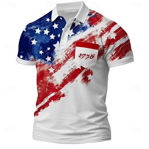 4. Juli 2026 250. Herren Amerikanische US-Flagge Polo Kurzarm Polo-Shirts Hemden mit Kragen Lässig Outdoor Athleisure Alltagskleidung Tasche 3D-Druck Knöpfe Sommer Weiß 1 Weiß Rote