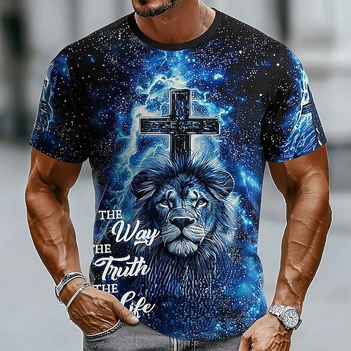 Herren Löwe Kreuz Christlich T Shirt Kurzarm T-Shirt 3D-Druck Rundhalsausschnitt Hemd Religiös Lässig Täglich Party Blau Rote Grün Sommer Frühling Bekleidung S M L XL XXL XXXL