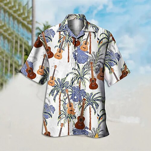 Per uomo Fenicottero Luci Camicia Camicia hawaiana Camicia Aloha Manica corta Camicia Collo ripiegabile Tropicale Di tendenza Streetwear Informale Hawaiano Per eventi Nero Giallo Verde chiaro S M L