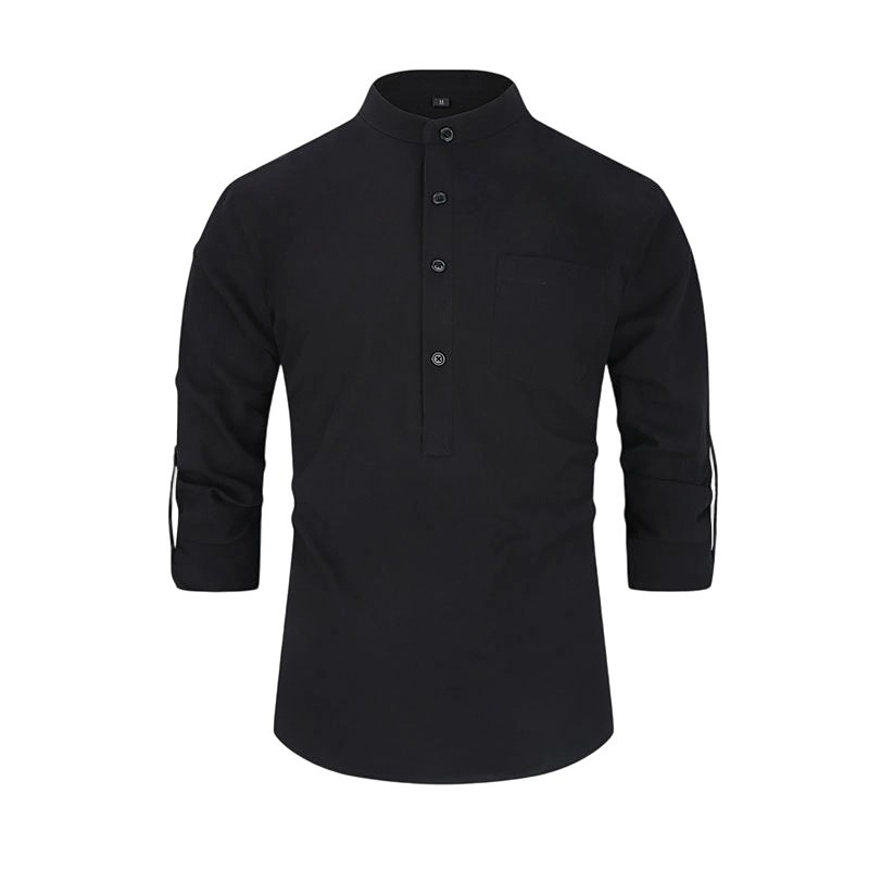 Men's 100% Cotton Shirt Black White Yellow Red Dark Navy Long Sleeve Plain Grandad Collar School Formal Clothing Apparel Minimalist