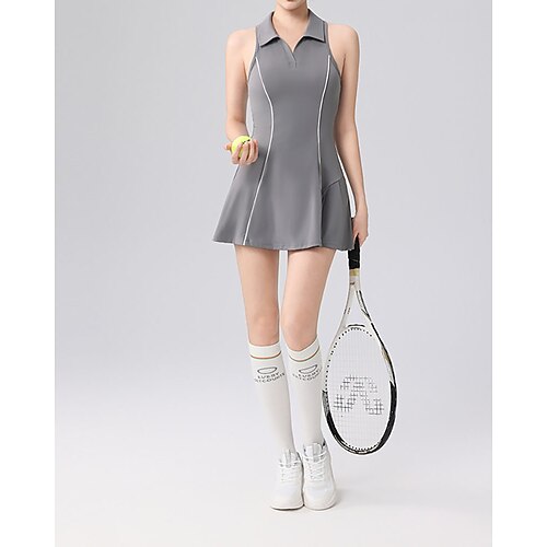 Per donna Tinta unita Abito da tennis con pantaloncini Abito sportivo Senza Maniche Tasca Senza schiena Elastico Traspirante Tennis Golf Corsa Colletto Polo Vestito Nero Bianco Verde Chiaro