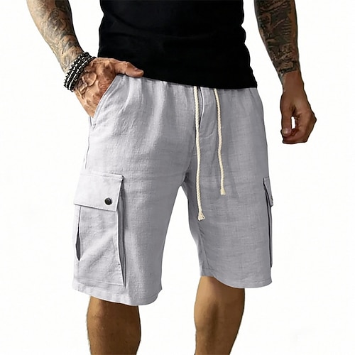 Per uomo Shorts Shorts di Lino Pantaloncini Estivi Shorts da Spiaggia Coulisse Elastico in vita Semplice Comodità Traspirante Lunghezza al ginocchio Casuale Quotidiano All'aperto Vacanza Moda Nero