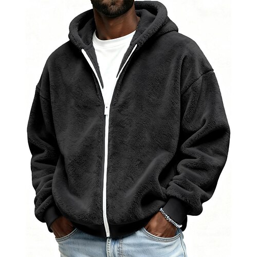 Per uomo Felpa con cappuccio Felpa con cappuccio a zip intera Felpa con cappuccio in pile Felpa con cappuccio foderata in pile Nero Bianco Borgogna Blu marino Blu Reale Con Cappuccio Semplice